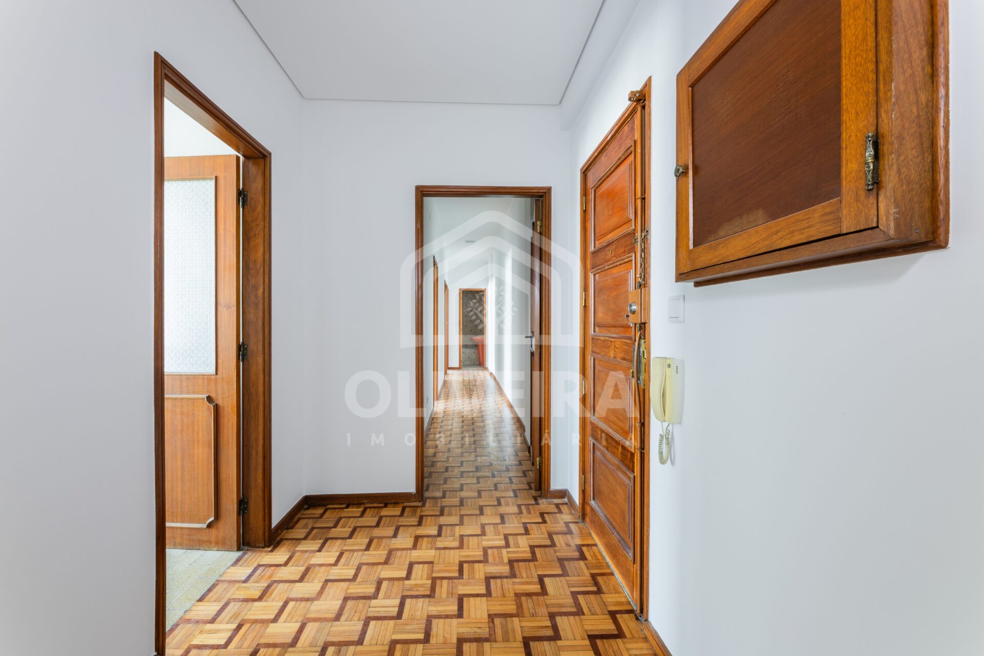 O apartamento conta ainda com ar condicionado, garantindo conforto térmico durante todo o ano, e caixilharia renova, que assegura melhor isolamento acústico e térmico. Os três quartos têm boas áreas, sendo ideais para uma família ou para quem procura espaço adicional para escritório ou outras finalidades.
